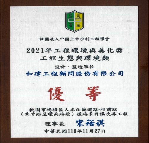 榮獲 社團法人中國土木水利工程學會 110年工程環境與美化獎-工程生態與環境類『優等』
