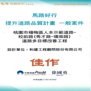 榮獲 內政部『馬路好行提升道路品質計畫 設計/監造 佳作』