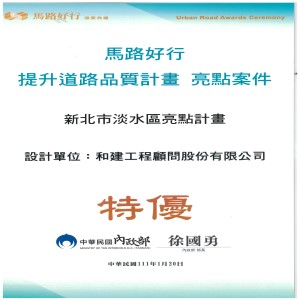 榮獲 內政部『馬路好行提升道路品質計畫 亮點案件 新北市淡水區亮點計畫 -設計/監造 特優』